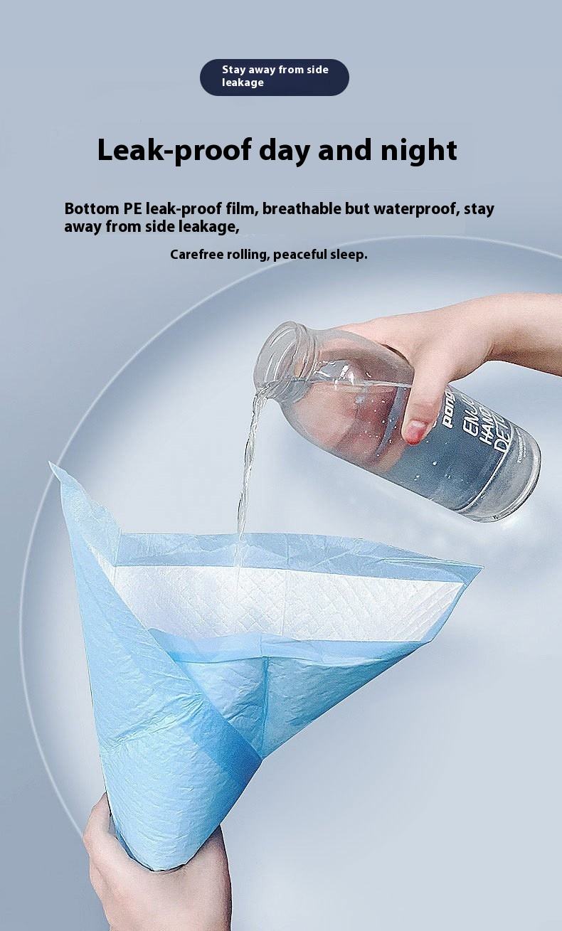 Imported wood pulp + high molecular weight, 65g per piece, hydrophilic non-woven fabric, rhombic embossed texture instantly absorbs liquid, high molecular weight locks in water without seepage back. The bottom blue PE film is leak-proof, and the external convex pressure point anti-slip design makes it more worry-free.
